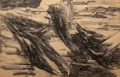 Watercolour, Acrylic, Gouache, Charcoal, and Rice Paper Pasted on Paper
